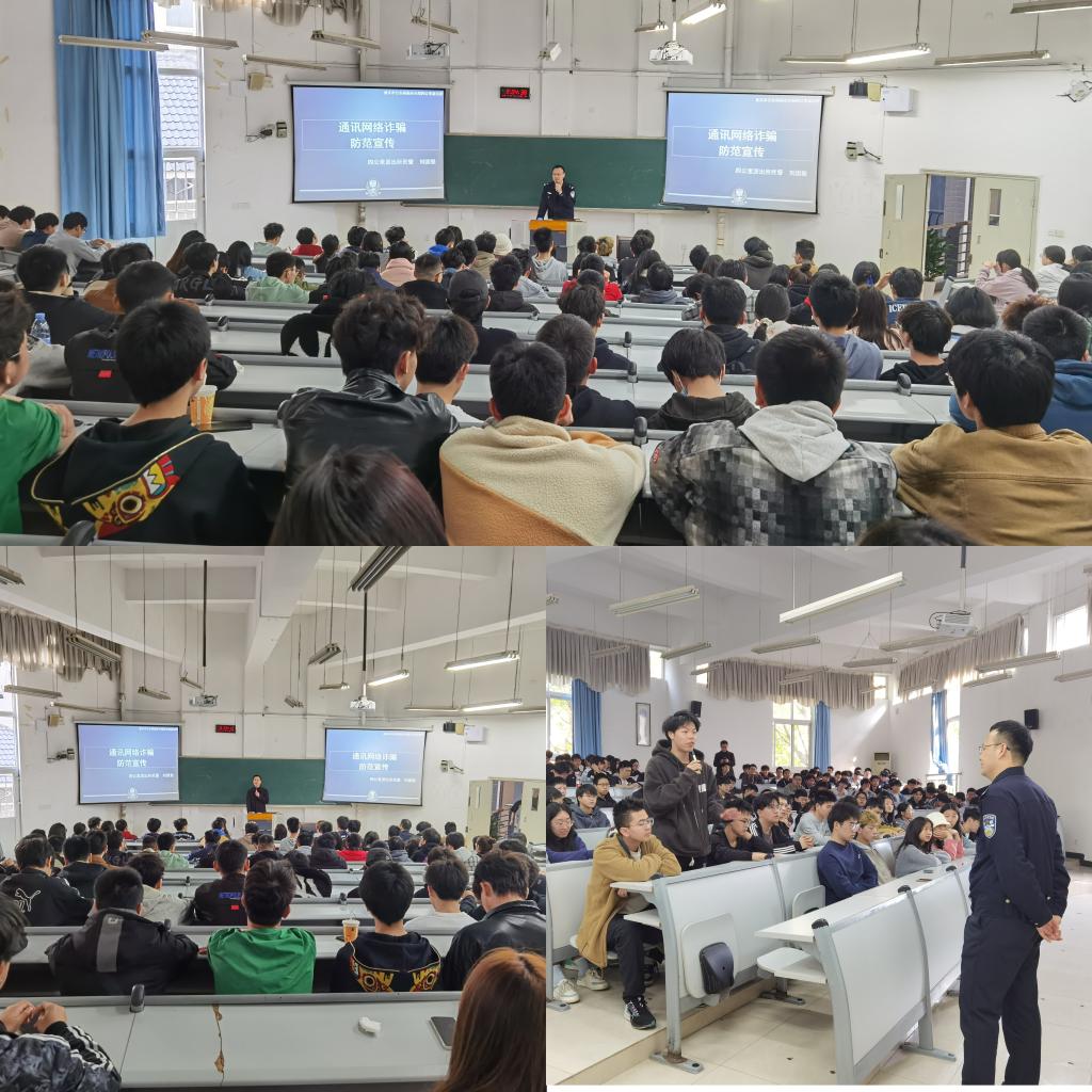 为加强校园反诈防骗宣传力度,增强师生的法治观念和安全防范意识,营造“预防电信诈骗及普法宣传”的浓厚氛围,守护平安和谐校园,3月10日上午,太阳成集团tyc151cc特邀请四公里派出所反诈中心刘国魁警官给员工开展题为“通讯网络诈骗防范宣传”的宣讲会。本次会议由太阳成集团tyc151cc党委副书记陈春洁主持,2022级近300名员工参加了会议。