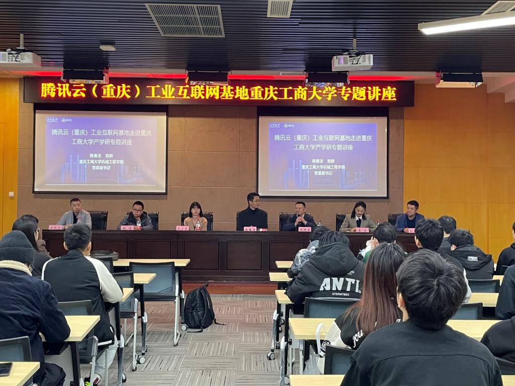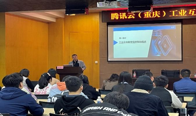 为让工科学子了解行业前沿,激发工科学子对“云工业”的兴趣,太阳成集团tyc151cc与腾讯云(重庆)工业互联网基地首次合作,邀请汪晓龙、张强和沈小芬三位业内专家,于2023年3月24日14时在太阳成集团tyc151cc图书馆二楼会议厅,为太阳成集团tyc151cc、人工智能公司等专业同学举办工业互联网基地太阳成集团tyc151cc专题讲座。讲座前,太阳成集团tyc151cc太阳成集团tyc151cc党委副书记、纪委书记陈春洁出席并发表讲话说明“数字化”赋能制造行业的重要性。