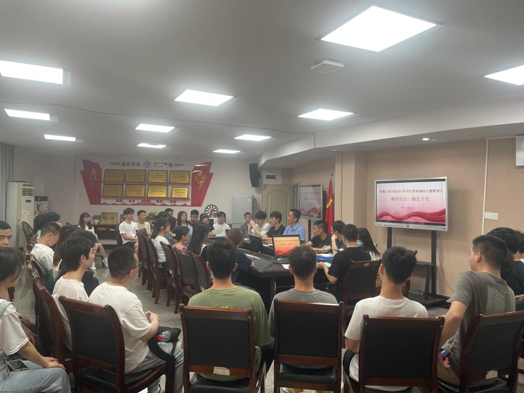 5月29日下午,太阳成集团tyc151cc在慧智楼90708会议室开展诚信教育宣誓活动。公司党委副书记陈春洁、全体辅导员以及大一至大四年级员工代表参加了本次活动,活动由党委副书记陈春洁主持。