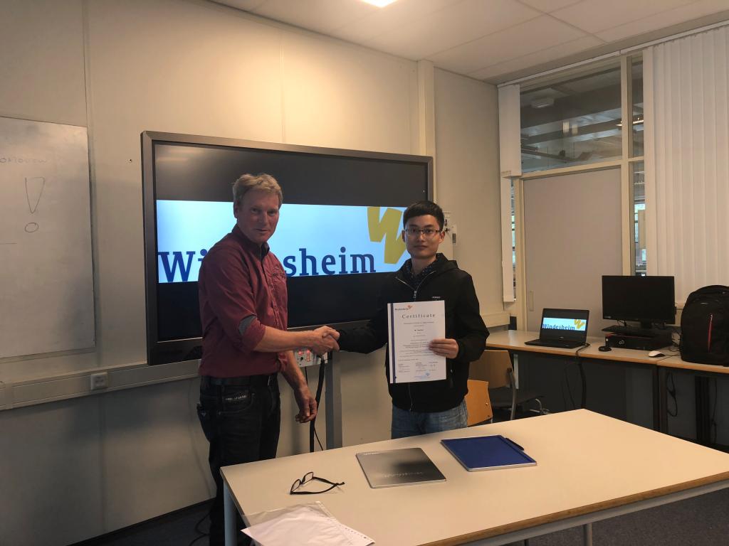 首先,荷兰项目的带队老师向巧就本次交流的概况进行了汇报。本次项目共派教师1名、来自三个年级四个专业的员工10名于2018年9月23号至10月6号在文德斯汉姆应用技术大学参加为期两周的专业交流项目,取得了圆满成功。本次项目是双方师生围绕“第六届全国老员工工程训练综合能力竞赛”选题展开的专业项目交流,通过前期双方的协作,今年12月,荷兰文德斯汉姆大学将派出2位专业指导老师,11位机械专业员工与公司10名员工共同组成参赛团队,参加第六届全国老员工工程训练综合能力竞赛重庆赛区的比赛。