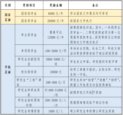 注:1.表中各类助学金仅面向以全日制脱产方式学习的非定向硕士研究生评选,评选细则以公司相关文件及通知为准。